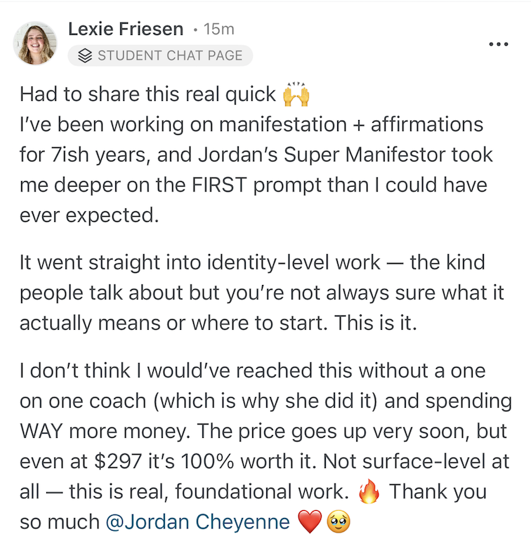 Super Manifestor by Jordan Cheyenne: Join now for $197 founding members rate! (Price goes up to $297 on Friday!) Just pay $47 today by clicking Klarna or Afterpay!