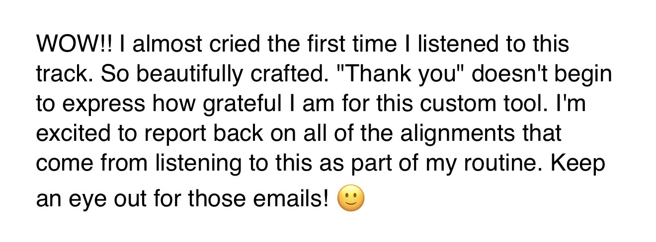 This personalized affirmation track is customized specifically for you, by Jordan herself. No one else will ever have this, and it's tailed to your specific goals, word for word. We tackle your manifestation goal, your limiting beliefs, and reprogram your mind to become the master manifestor you've always been.